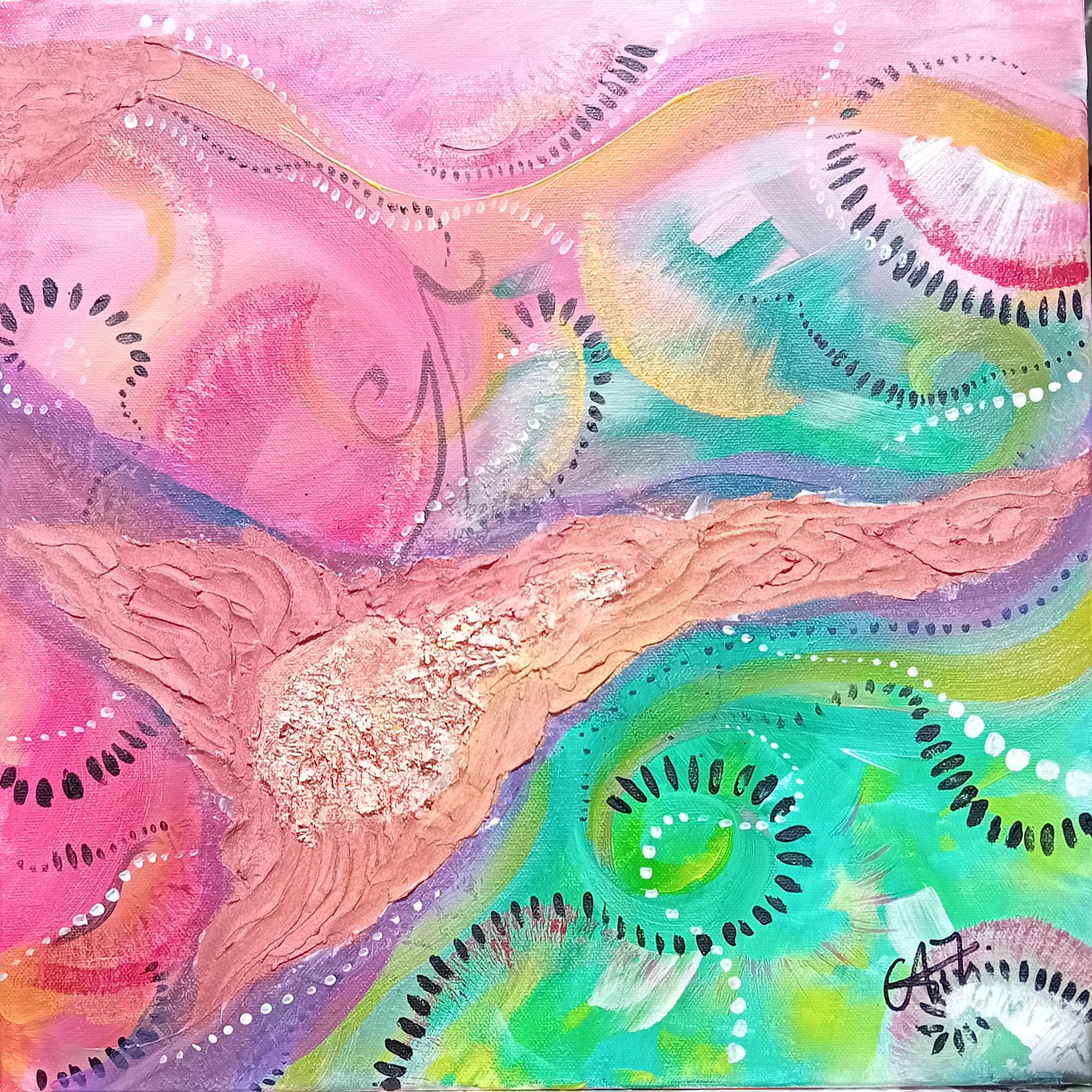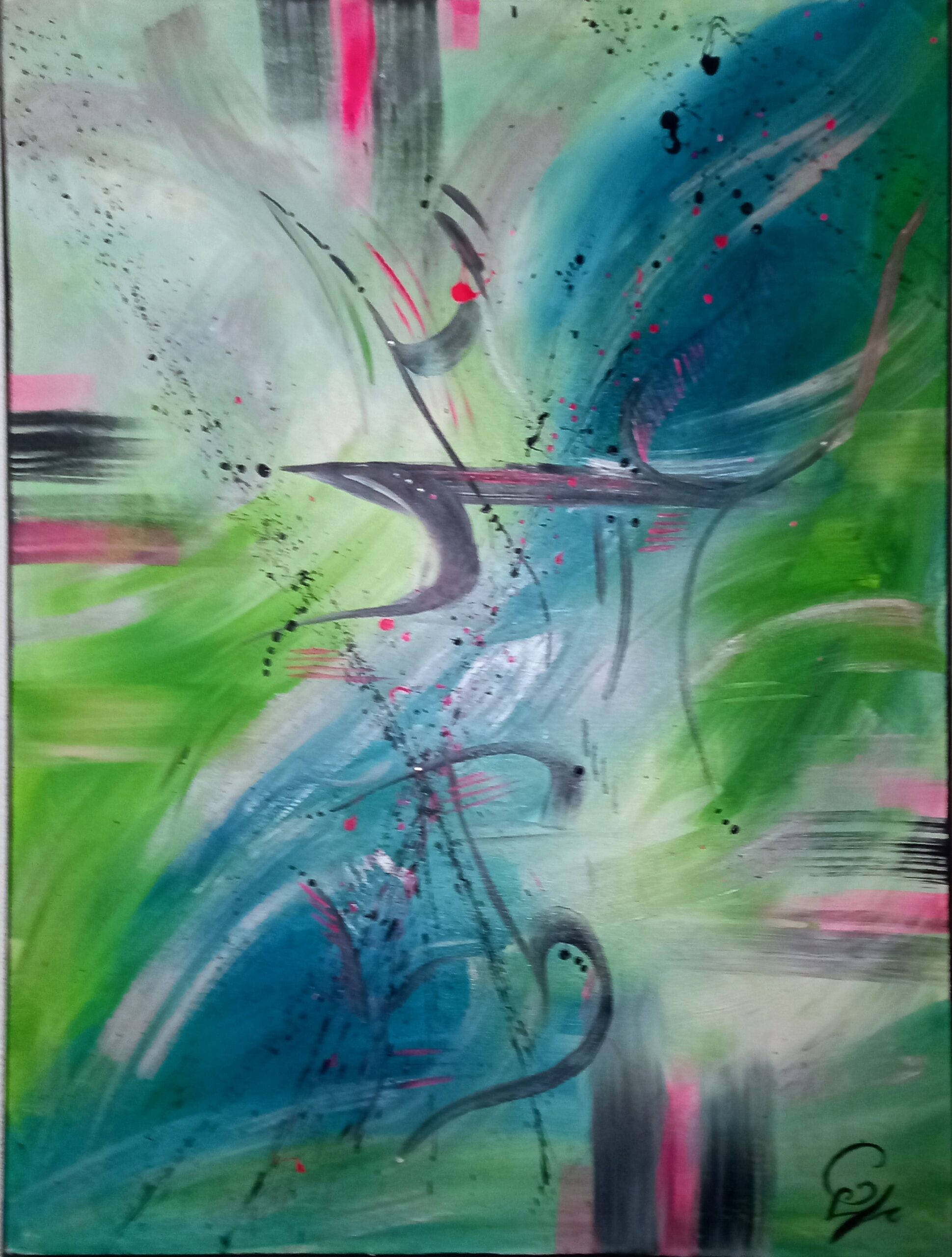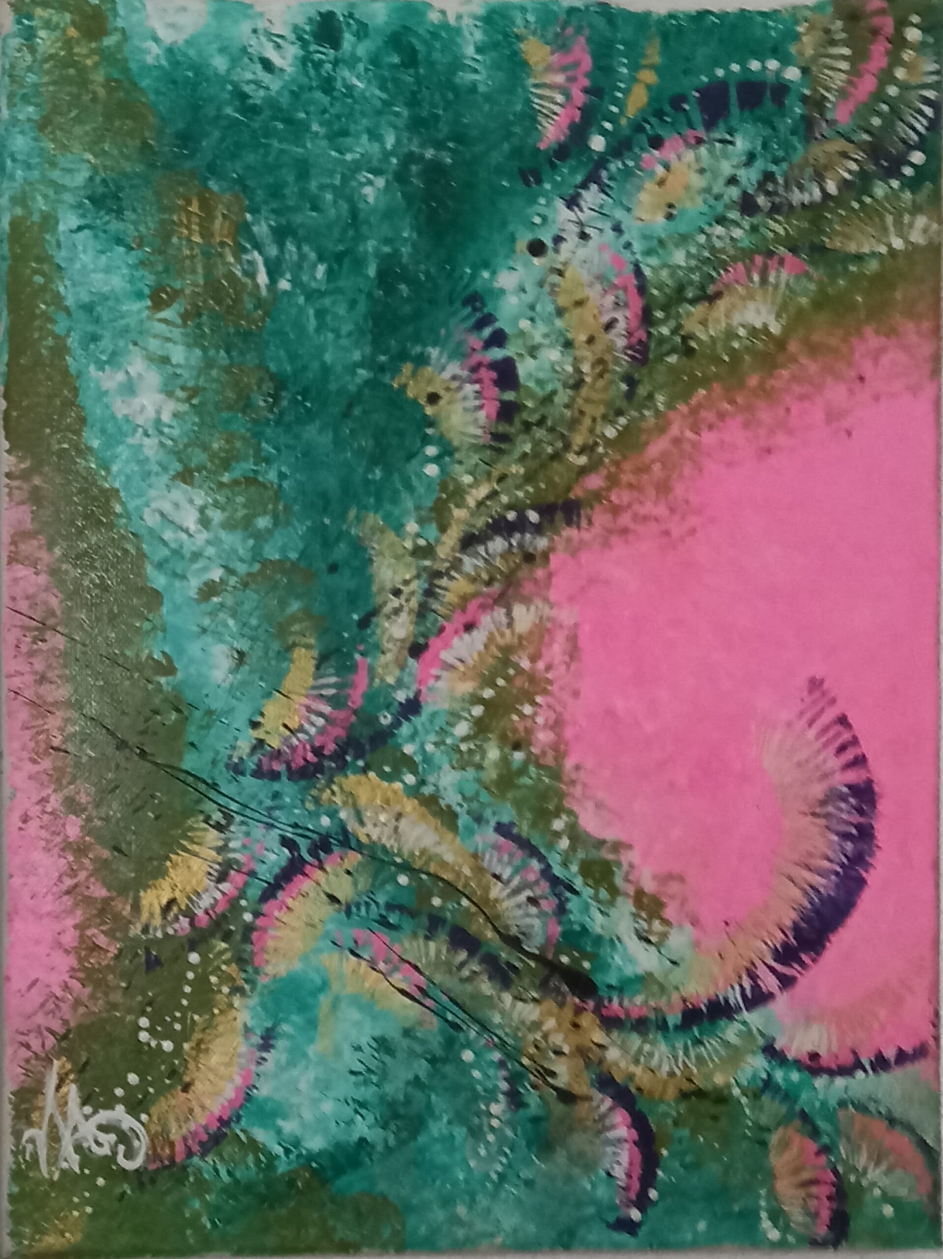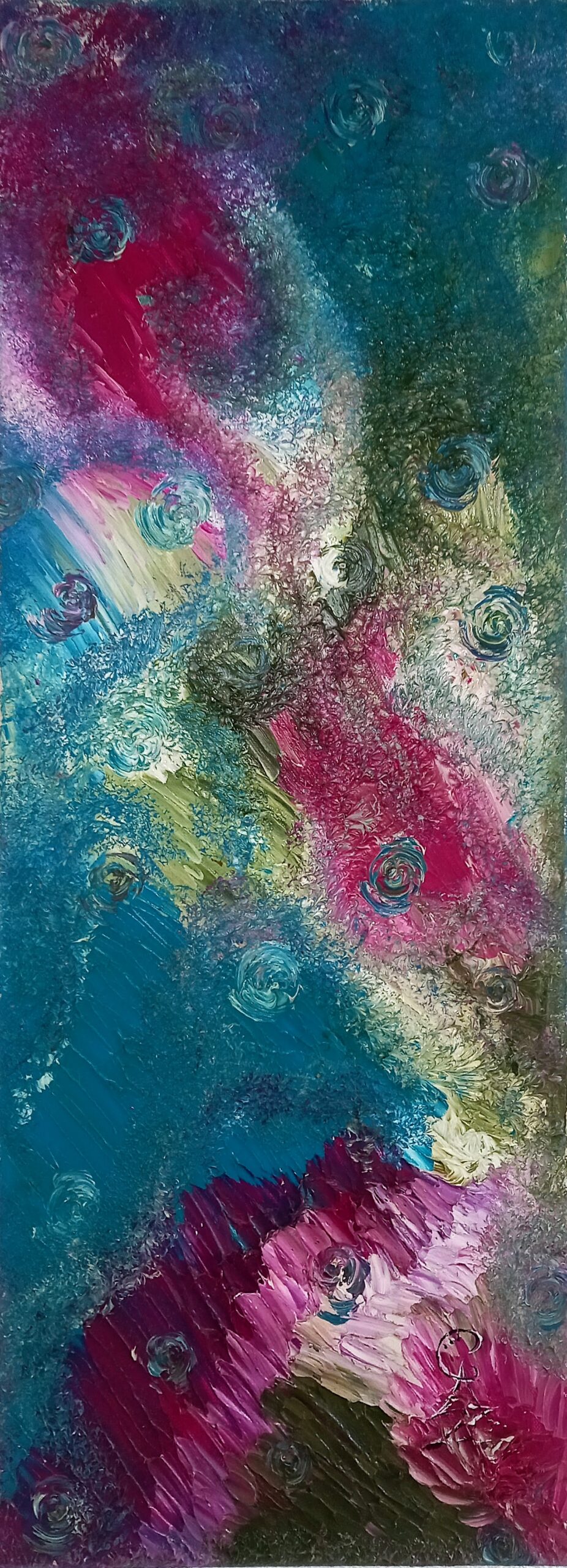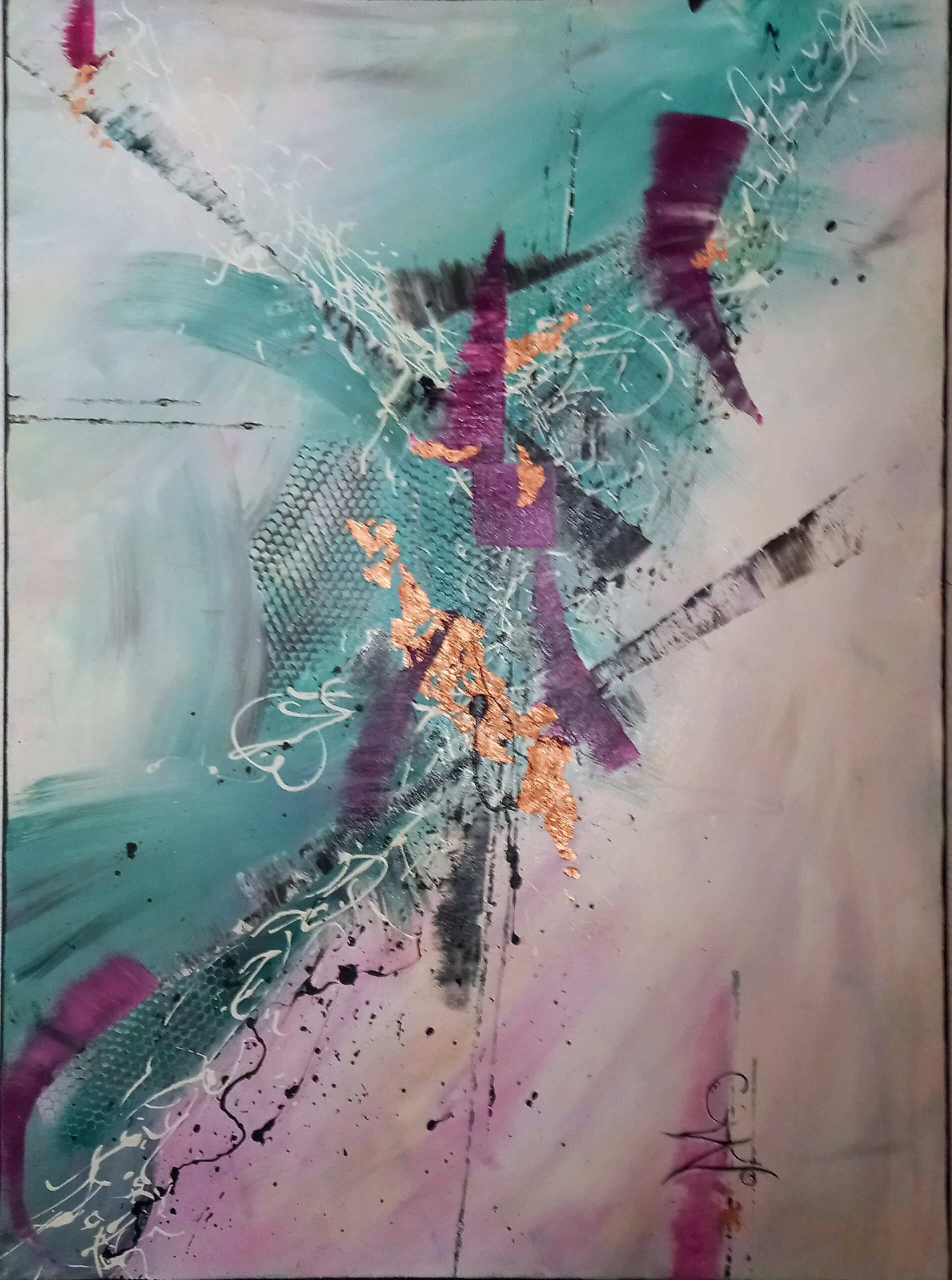 Son art reflète cette immersion dans la réalité : chaque tableau devient une œuvre vivante, où textures et formes s’entrelacent avec des émotions cachées et des joies vécues, tout en laissant place à l’inconnu. Les couleurs, souvent audacieuses, se mêlent à des nuances plus subtiles, créant un langage visuel qui dépasse les mots. Elle explore des thèmes touchant à l’âme humaine, gardant confiance dans la profondeur des expériences vécues par chacun.