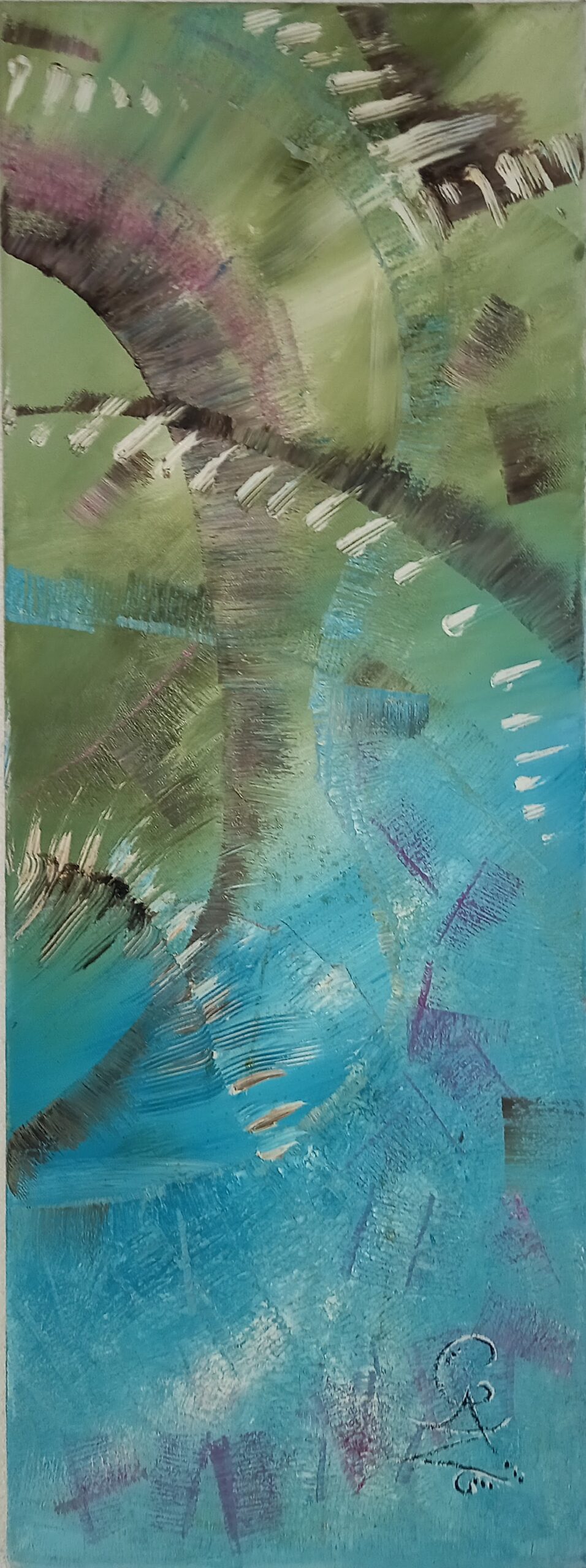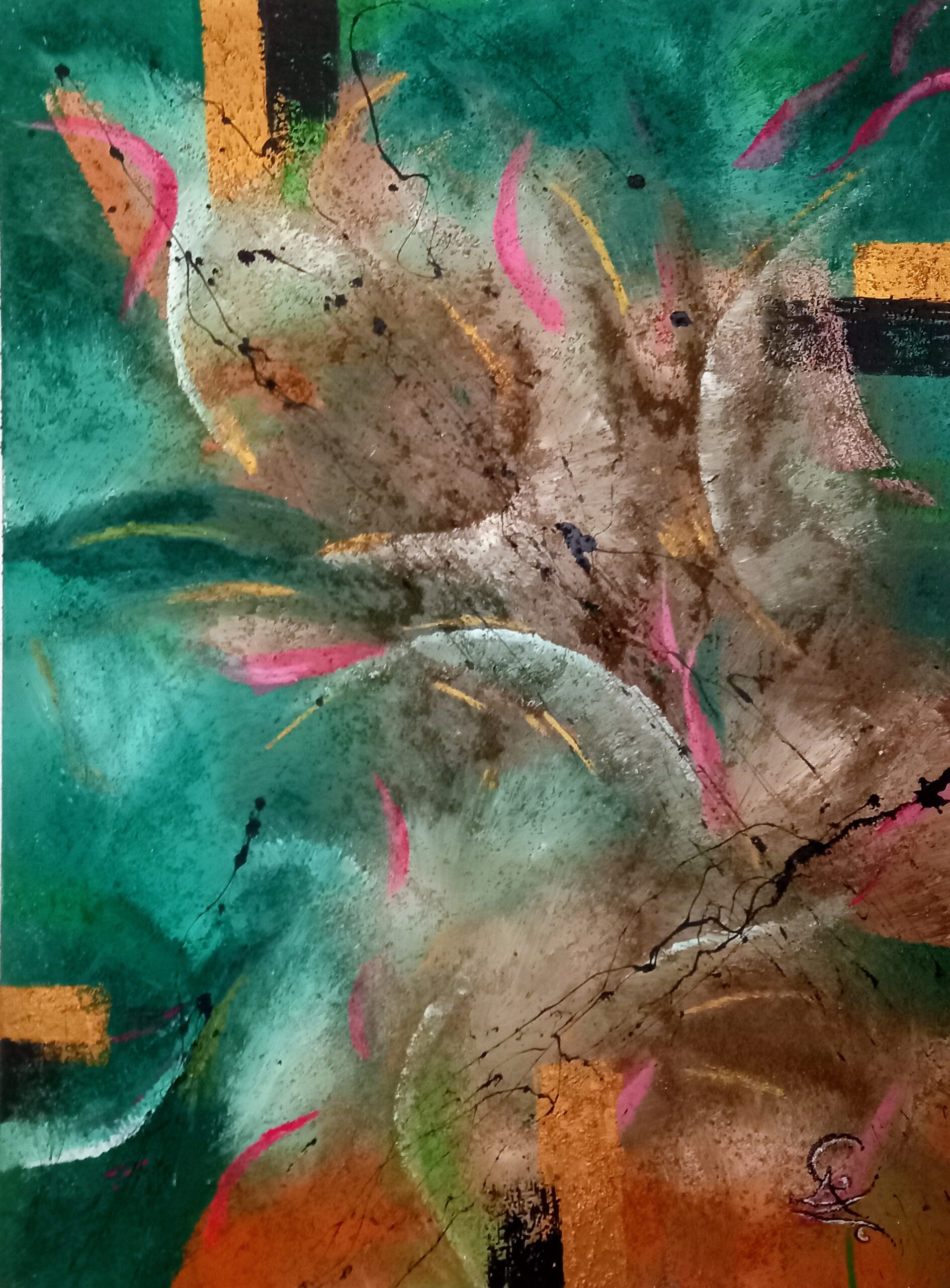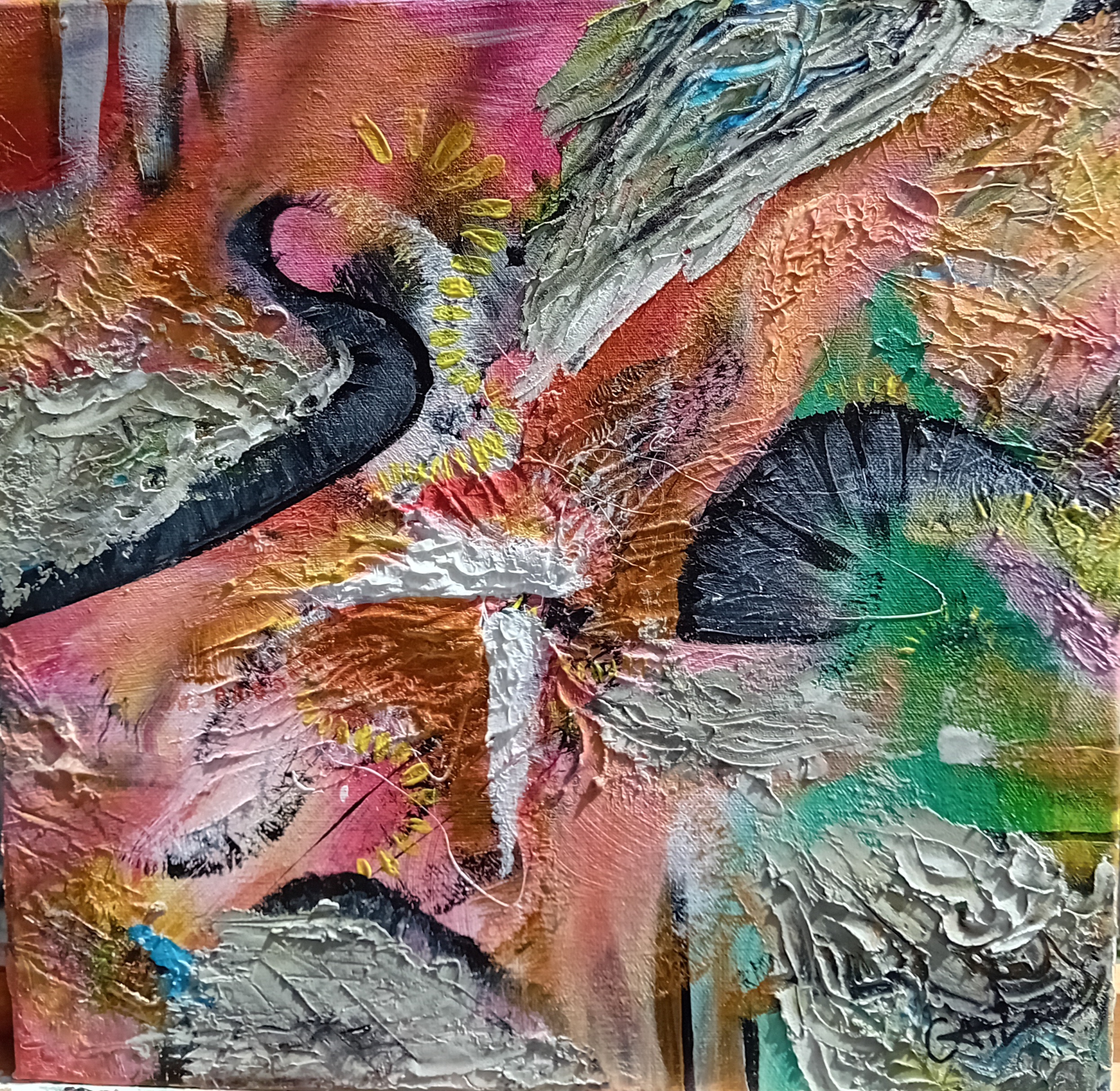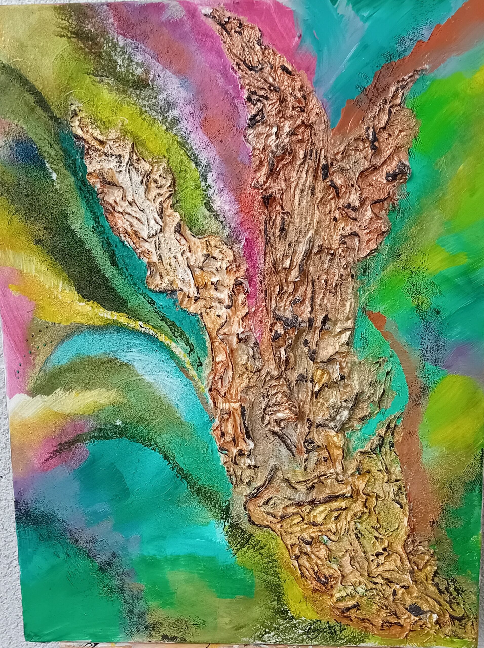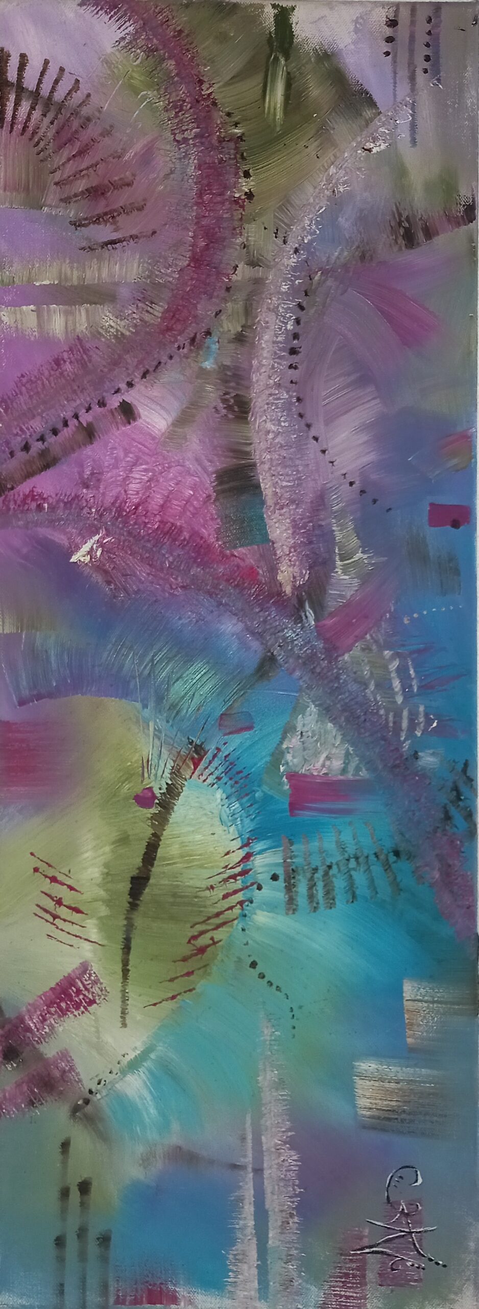Son art reflète cette immersion dans la réalité : chaque tableau devient une œuvre vivante, où textures et formes s’entrelacent avec des émotions cachées et des joies vécues, tout en laissant place à l’inconnu. Les couleurs, souvent audacieuses, se mêlent à des nuances plus subtiles, créant un langage visuel qui dépasse les mots. Elle explore des thèmes touchant à l’âme humaine, gardant confiance dans la profondeur des expériences vécues par chacun.