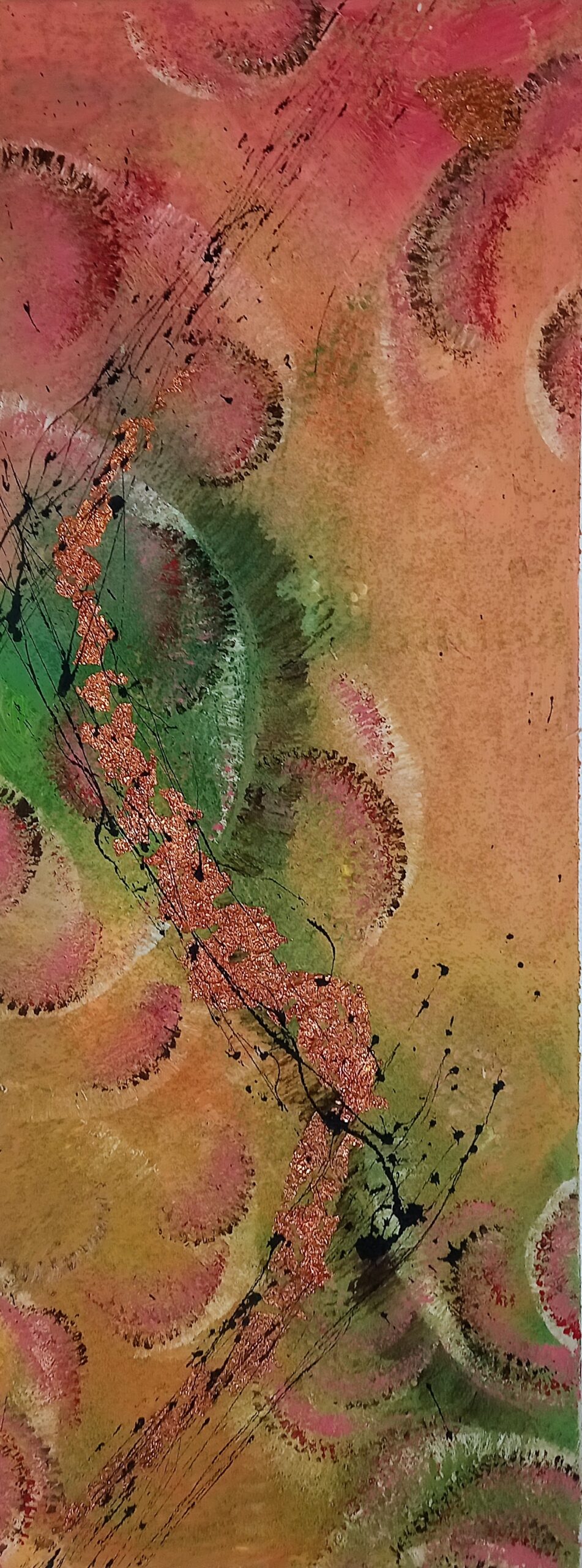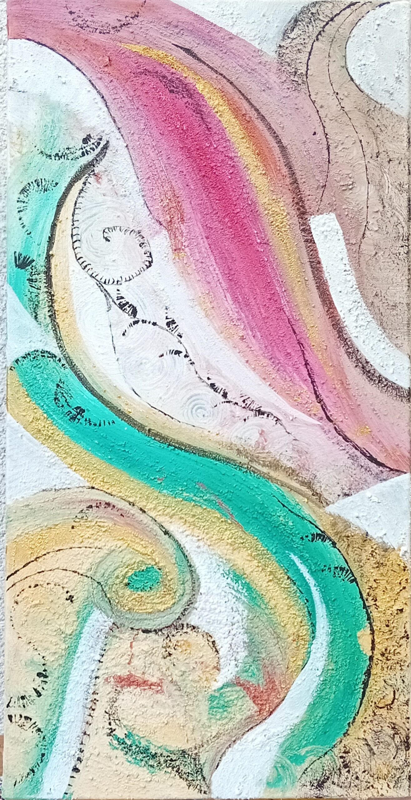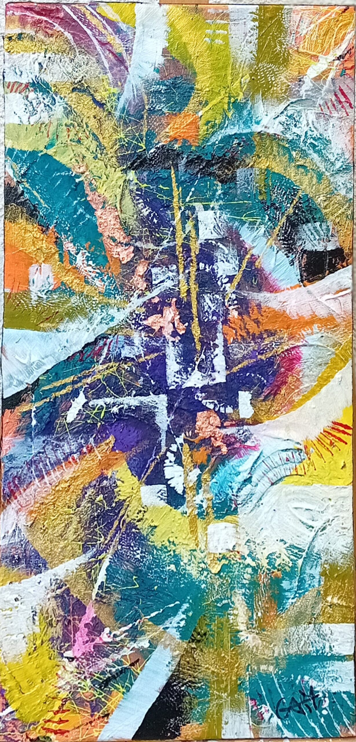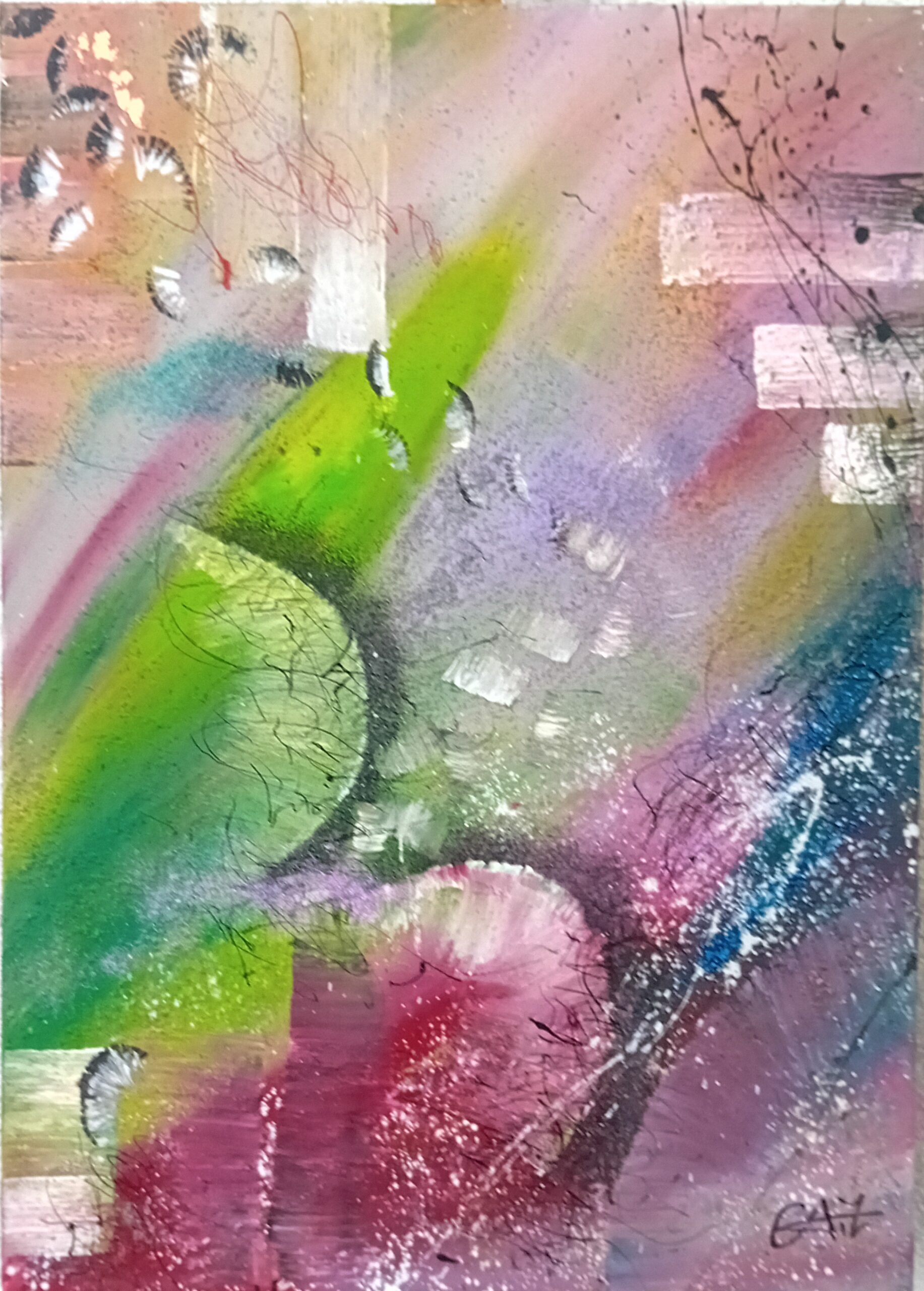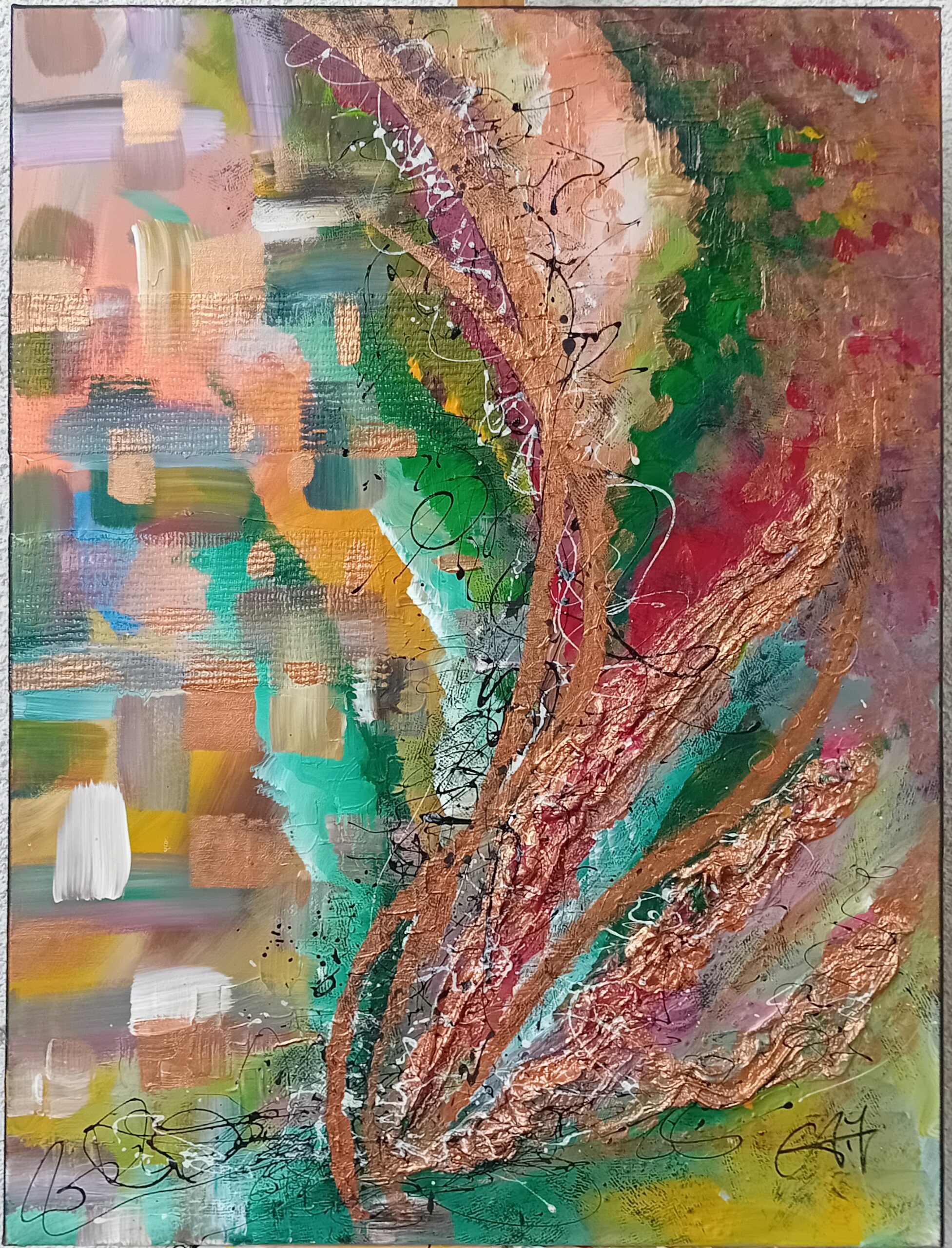 Son art reflète cette immersion dans la réalité : chaque tableau devient une œuvre vivante, où textures et formes s’entrelacent avec des émotions cachées et des joies vécues, tout en laissant place à l’inconnu. Les couleurs, souvent audacieuses, se mêlent à des nuances plus subtiles, créant un langage visuel qui dépasse les mots. Elle explore des thèmes touchant à l’âme humaine, gardant confiance dans la profondeur des expériences vécues par chacun.