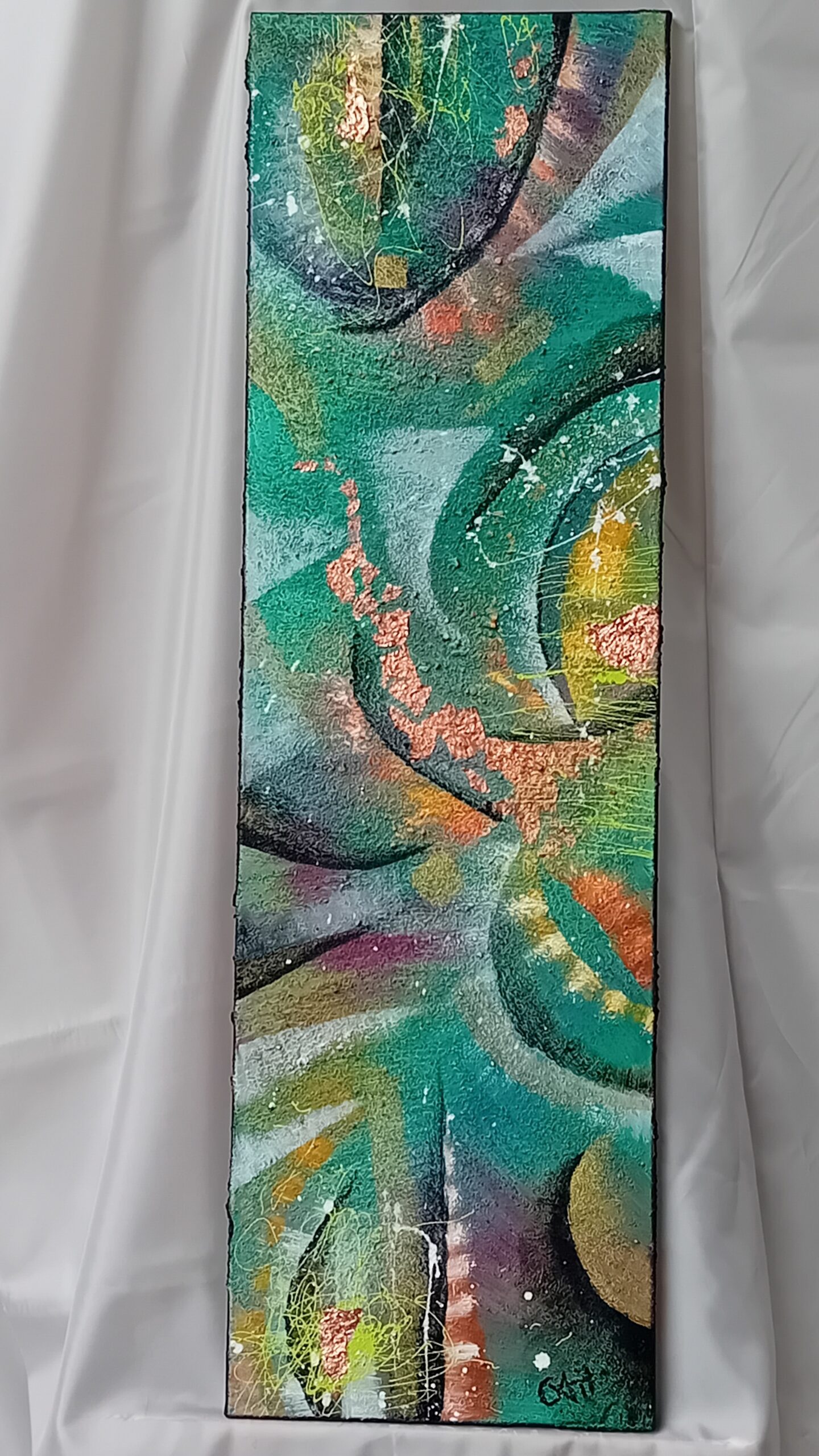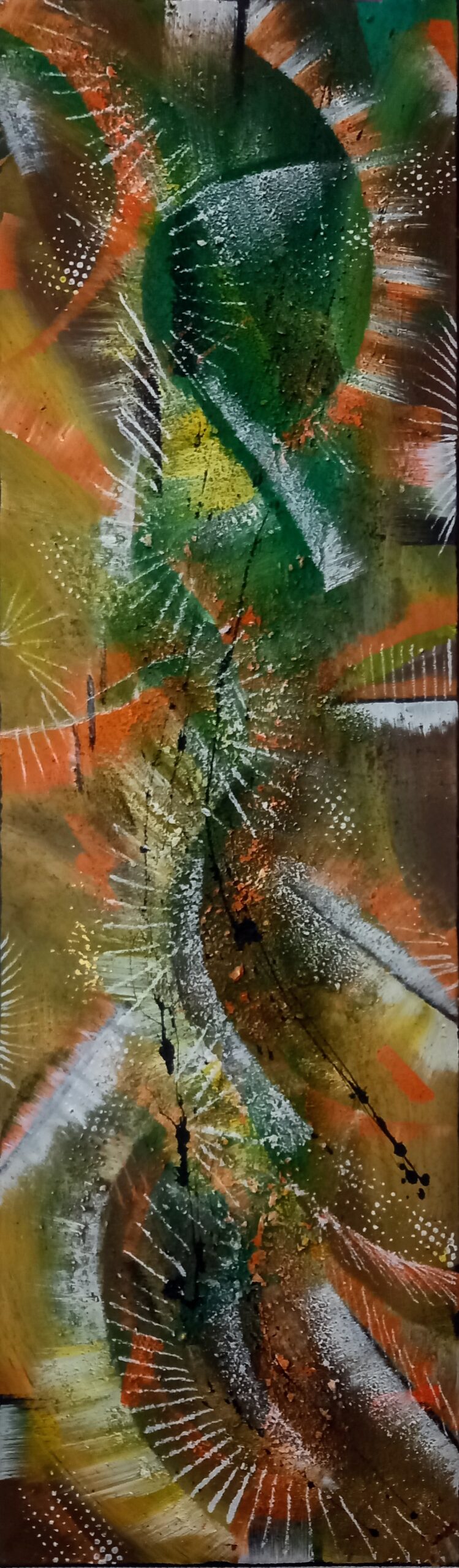 Chrys aborde la toile avec une approche intuitive, laissant libre cours à ses émotions dans une authenticité totale. La sérénité est son refuge naturel, où elle trouve inspiration et ressourcement, loin du tumulte ambiant. Cette paix intérieure stimule sa créativité, lui permettant de façonner son art avec une clarté remarquable. Elle ne se laisse pas perturber par les bruits extérieurs ; au contraire, elle les traduit en vibrations au sein de ses œuvres.
